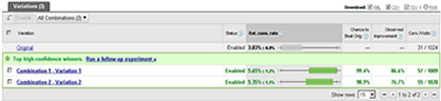 Как видно из результатов, победителем теста на удивление оказалась страница №2 с относительным улучшением процента подачи заявок на 87.3%. Ее абсолютный показатель подачи заявок 5,63 ±1.2%, что на 2,62% выше показателя оригинальной страницы. Неожиданный результат, так как изначально ожидалось, что страница с размещеатнной на ней формой регистрации получит больше количество заявок. Однако тест показал, хотя и незначительный, но более худший процент отдачи страницы №3. Возможно сыграли роль вторичные факторы такие как дизайн и контент.