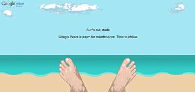 Все-таки забавные парни работают в корпорации Google. Вот на какую заставку я наткнулся во время технического обслуживания их новой платформы Google Wave см.скриншот: